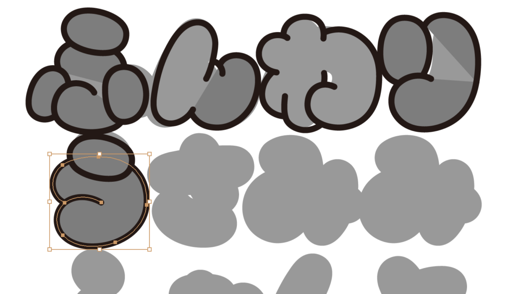 「み」の折れのうさみみ感を優先したかったので他の字も折りたたみを入れました。