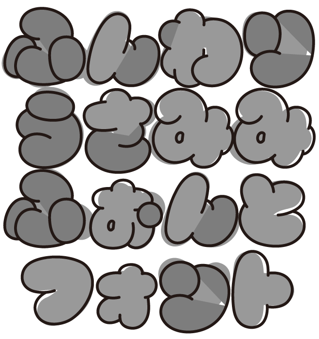 アイデア出しというかリデザイン案。フリーフォントで公開しているふんわりラウンドをくい込みのある膨らんだ文字にしたい。2014年に作ったものなのでだいぶ前のものですね、懐かしい。