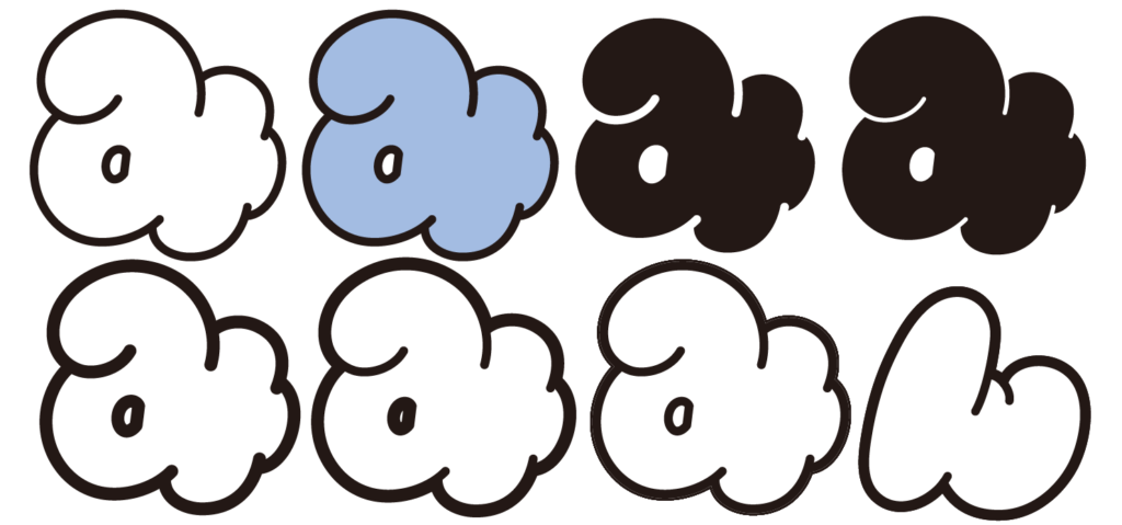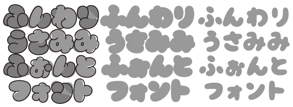 ふんわりラウンドのボールドとして出そうと思ってたけど、もしかしたら同一フォントだと思ってもらえないんじゃないだろうか。私の中ではくい込みを入れたボールドだけど無理があるかも?