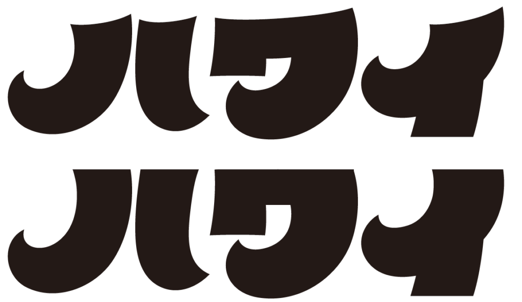 ハワイ・南国系の青や黄色っぽいイメージで描いたけど(パイナップルソーダ等)、意外にハロウィンやマジック系の黒や紫系(ハロウィンナイト等)もいけそうかも?カタカナだけでもフォントになってたら便利かな。
