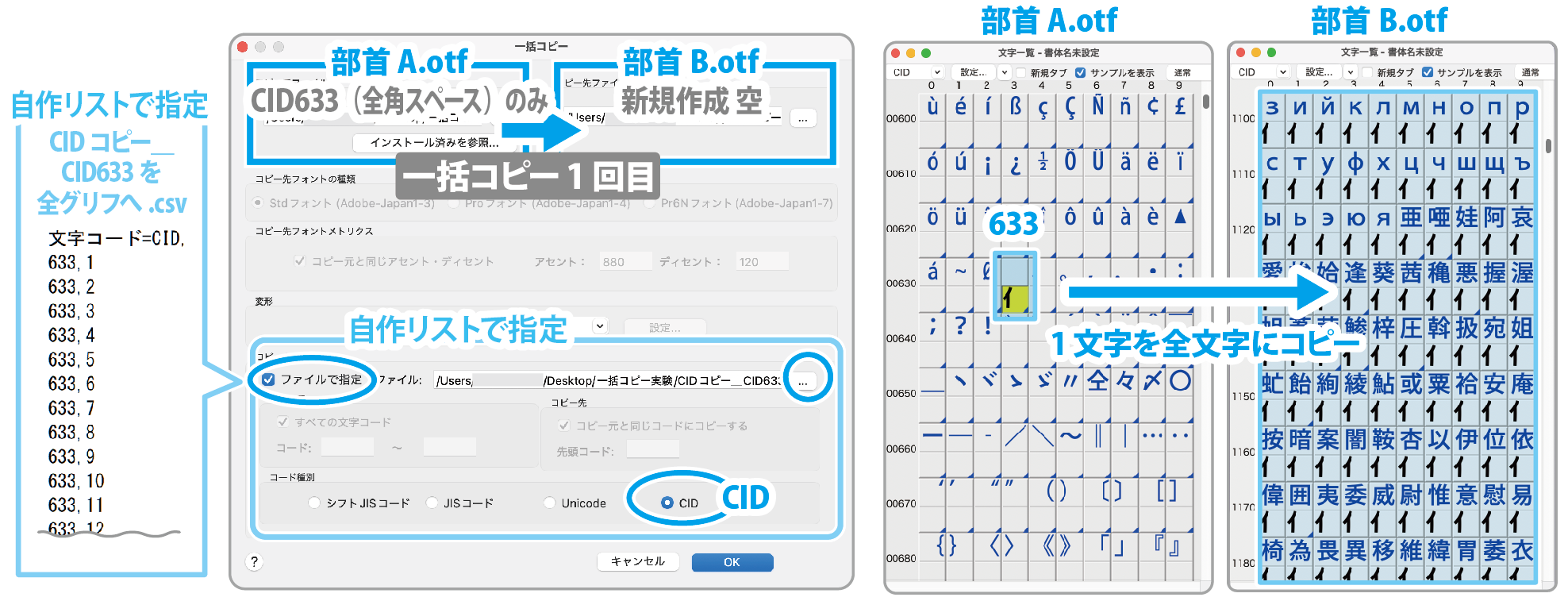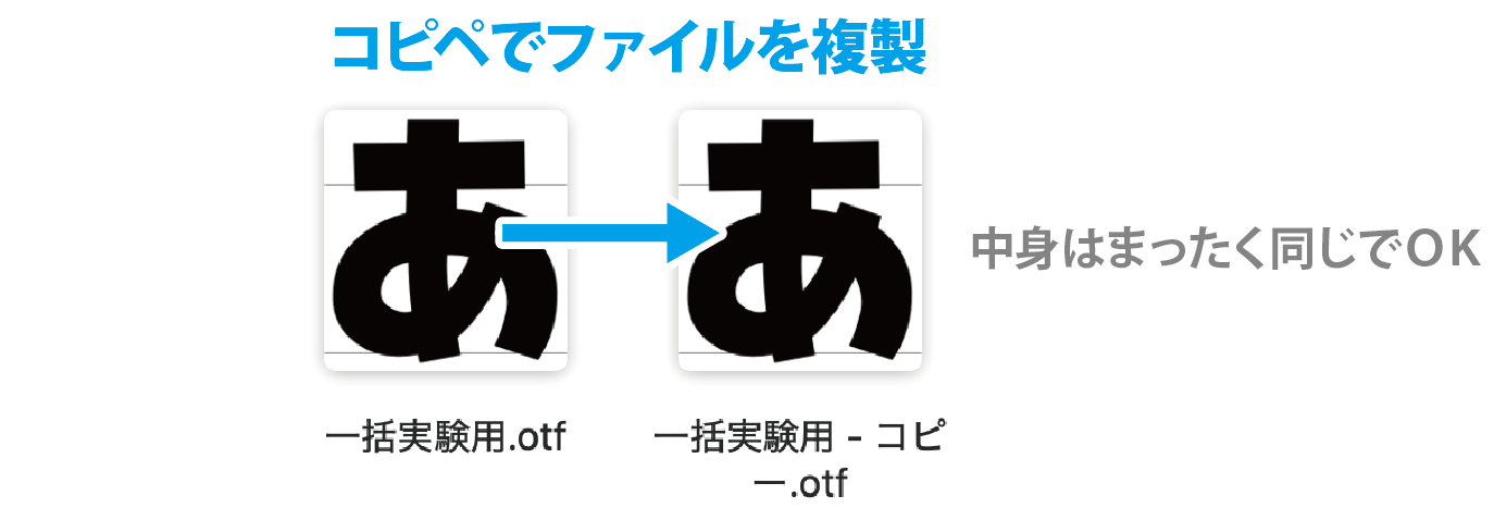 ・手順のファイル名(A.otf など)は他の名前でも実行できます。